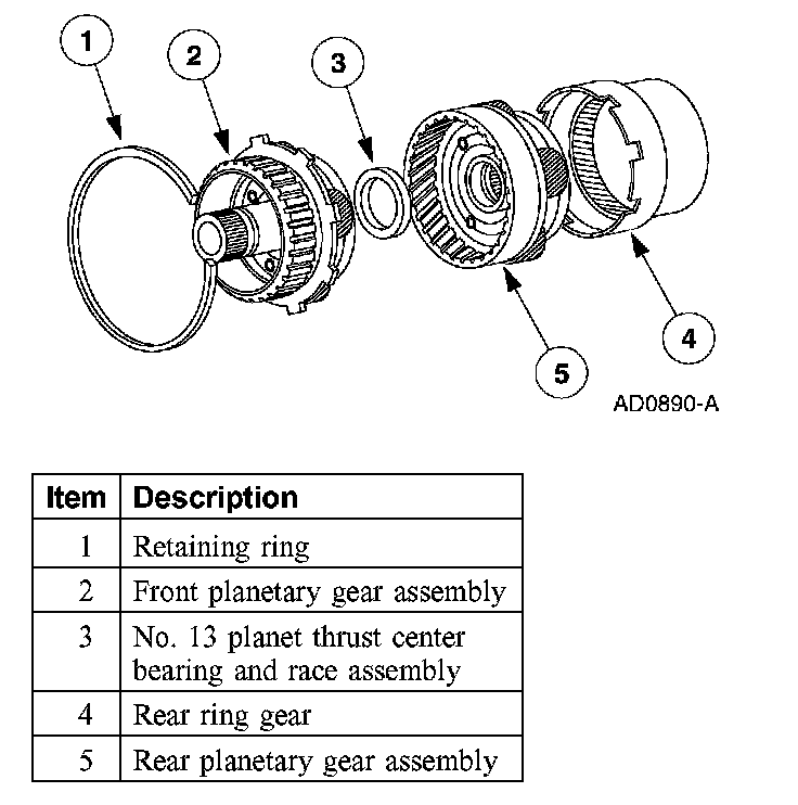 5. Clean and inspect the reverse planet for looseness and/or discoloration of the planet gears or wear on the bushings or bearings. Repair as required.