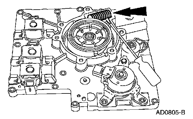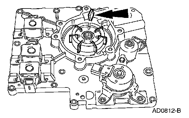 13. CAUTION: Be sure the pump bore area is well cleaned. It is a hidden foreign material trap. Flow from the pump goes into the manual valve circuit, then passes into the EPC circuit. Pump pressure at this point is very high. Any foreign material not cleaned out here will be pumped through the transaxle on the first operation.