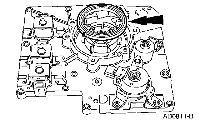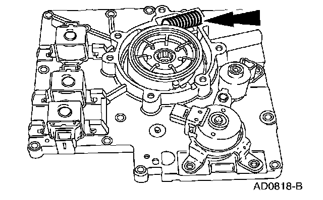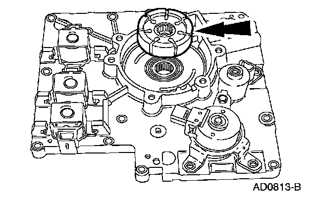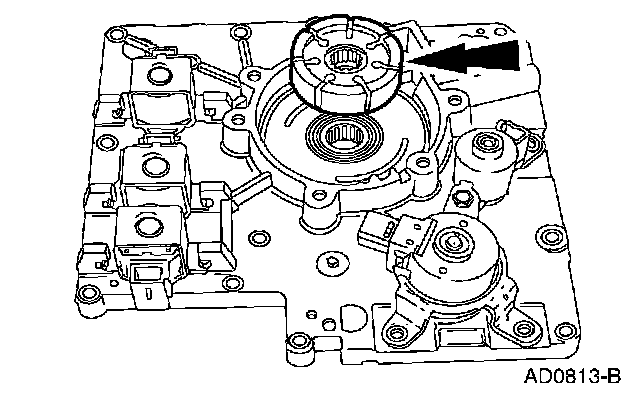 Remove the shift solenoids by pressing locking tab with a screwdriver and rotating them.