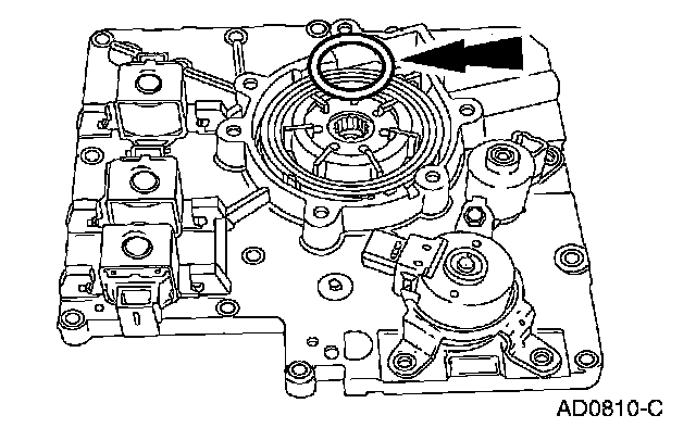 Install new O-rings and install the shift solenoids by pressing down and rotating them until they lock in place.
