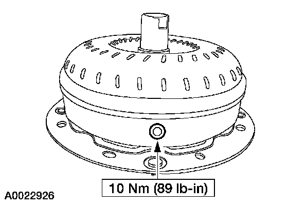 CAUTION: The torque converter drain plug and seal are not reusable. If equipped, discard the drain plug and seal, then install a new drain plug assembly.
