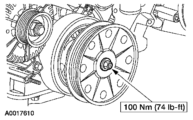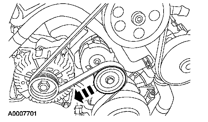2. Rotate the belt tensioner clockwise and remove the drive belt.