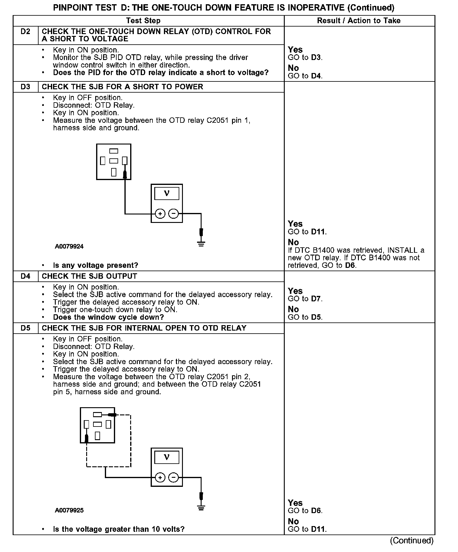 PINPOINT TEST D: THE ONE-TOUCH DOWN FEATURE IS INOPERATIVE