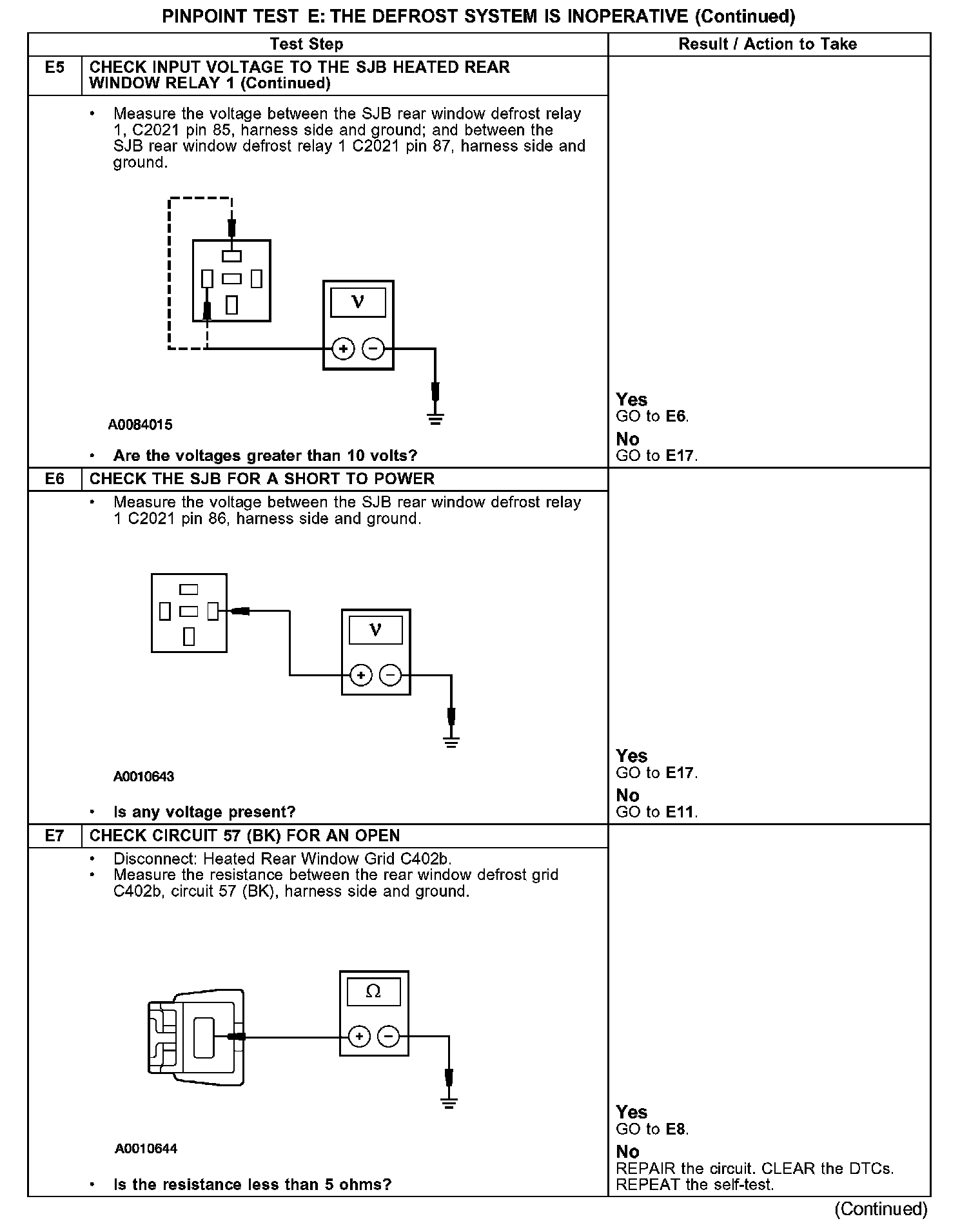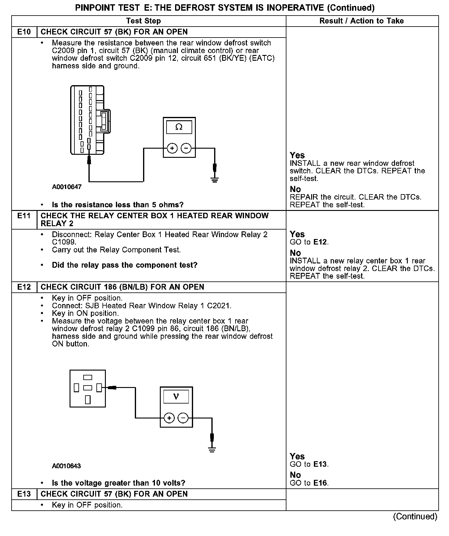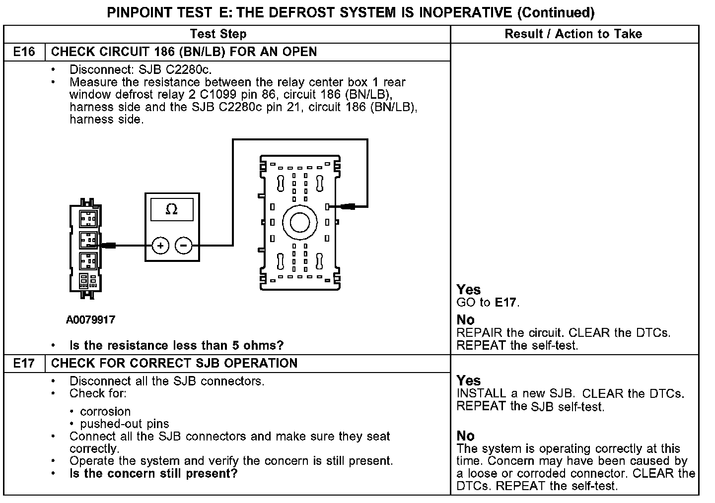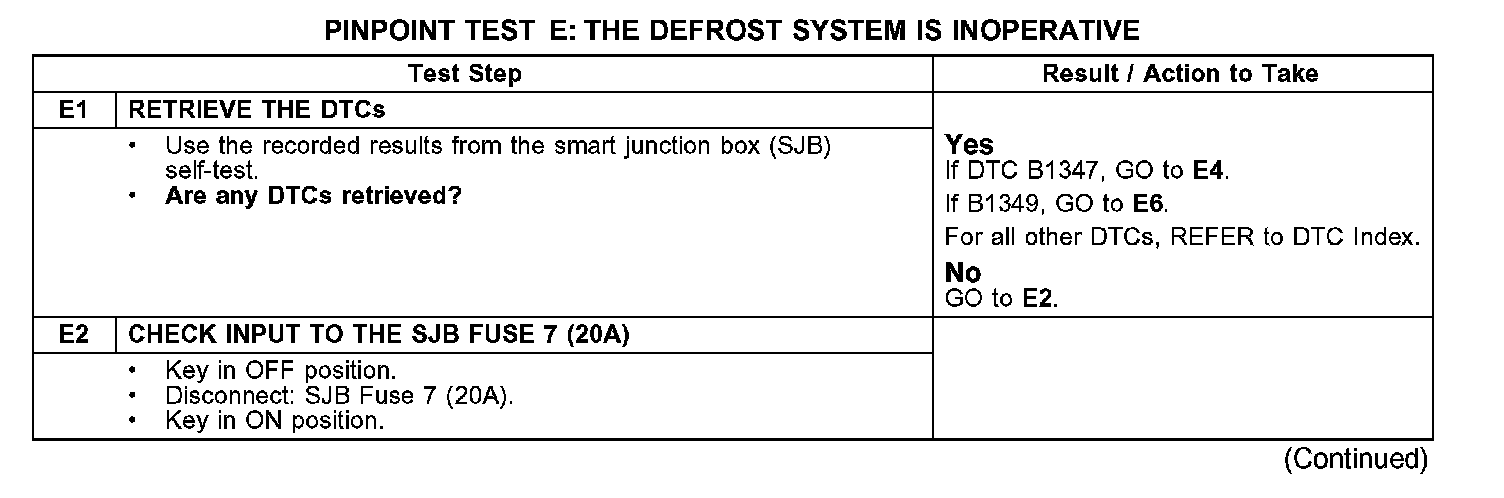 PINPOINT TEST E: THE DEFROST SYSTEM IS INOPERATIVE