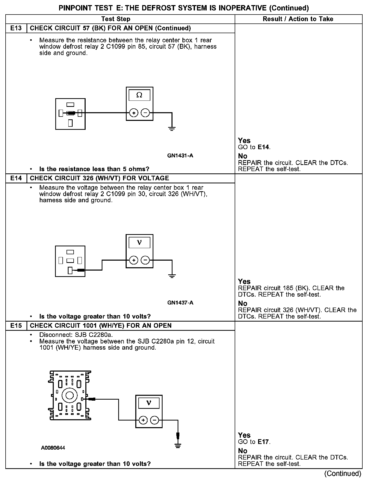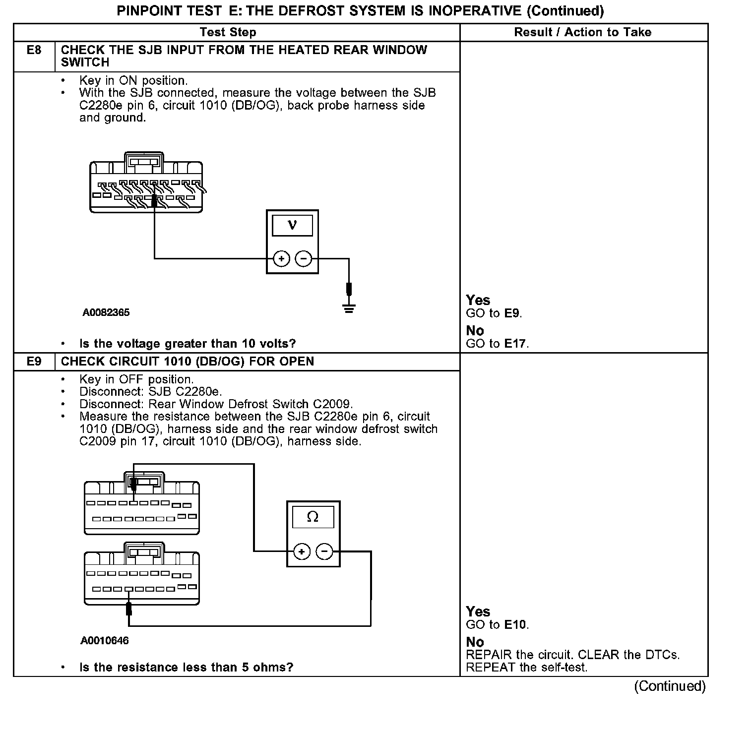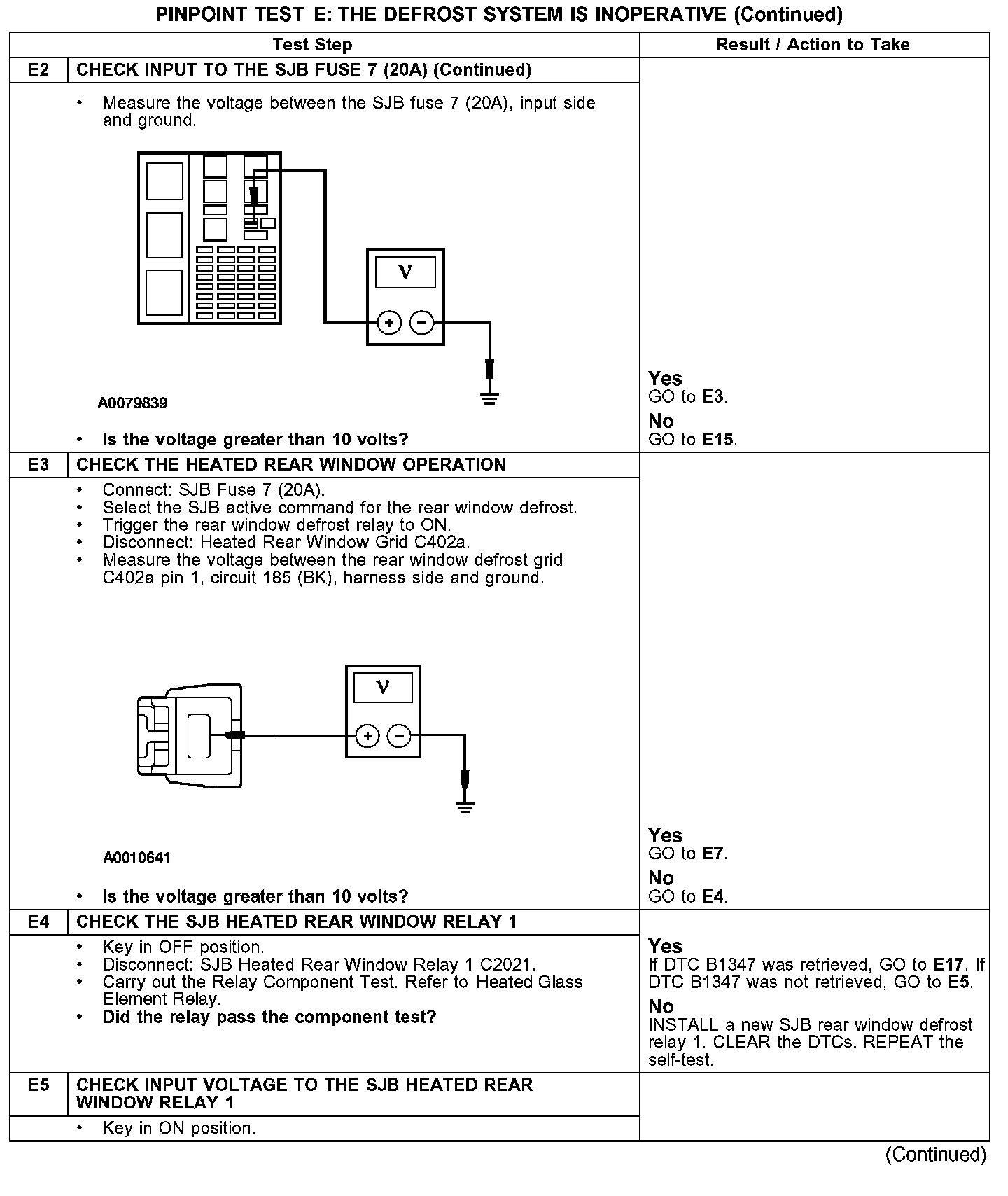 PINPOINT TEST E: THE DEFROST SYSTEM IS INOPERATIVE