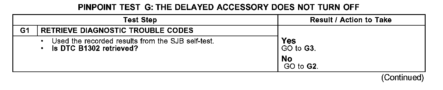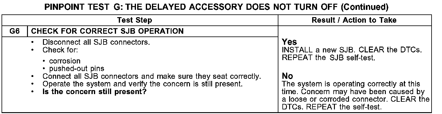 PINPOINT TEST G: THE DELAYED ACCESSORY DOES NOT TURN OFF
