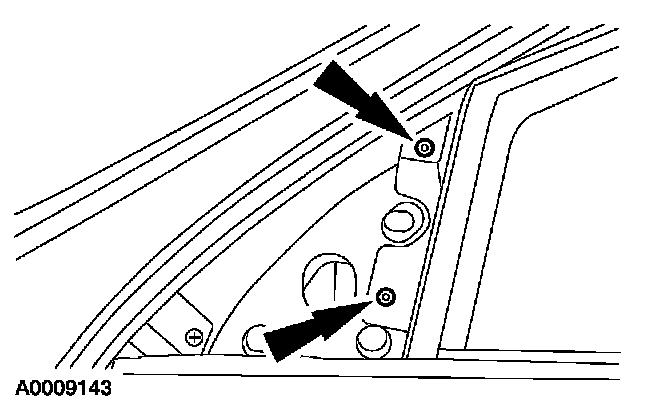 1. CAUTION: Due to the fragile make-up of the front door glass top run, removal is recommended only if the top run is damaged. Unnecessary removal may damage the light-gauge steel carrier insert within the rubber seal of the front door glass top run.