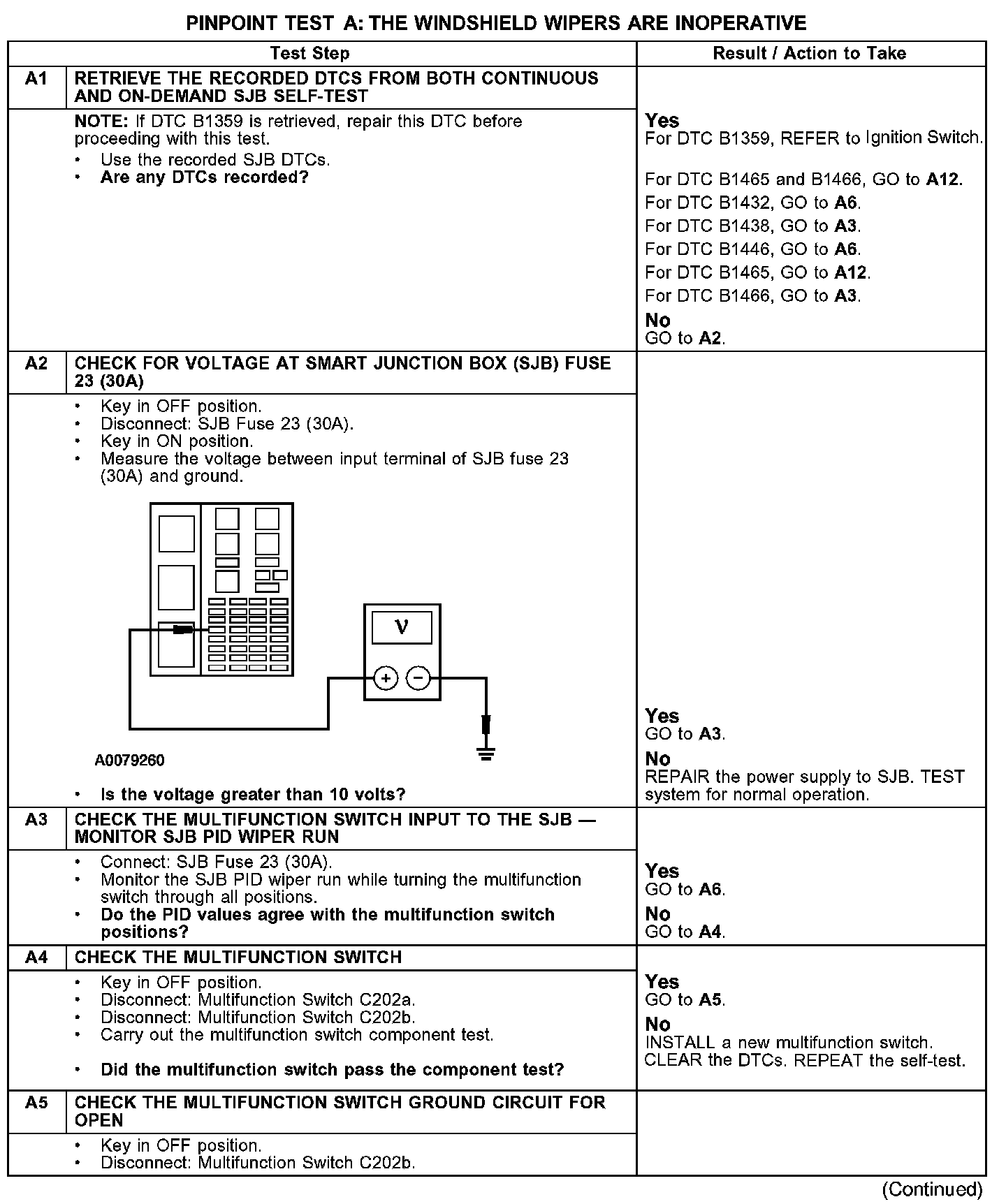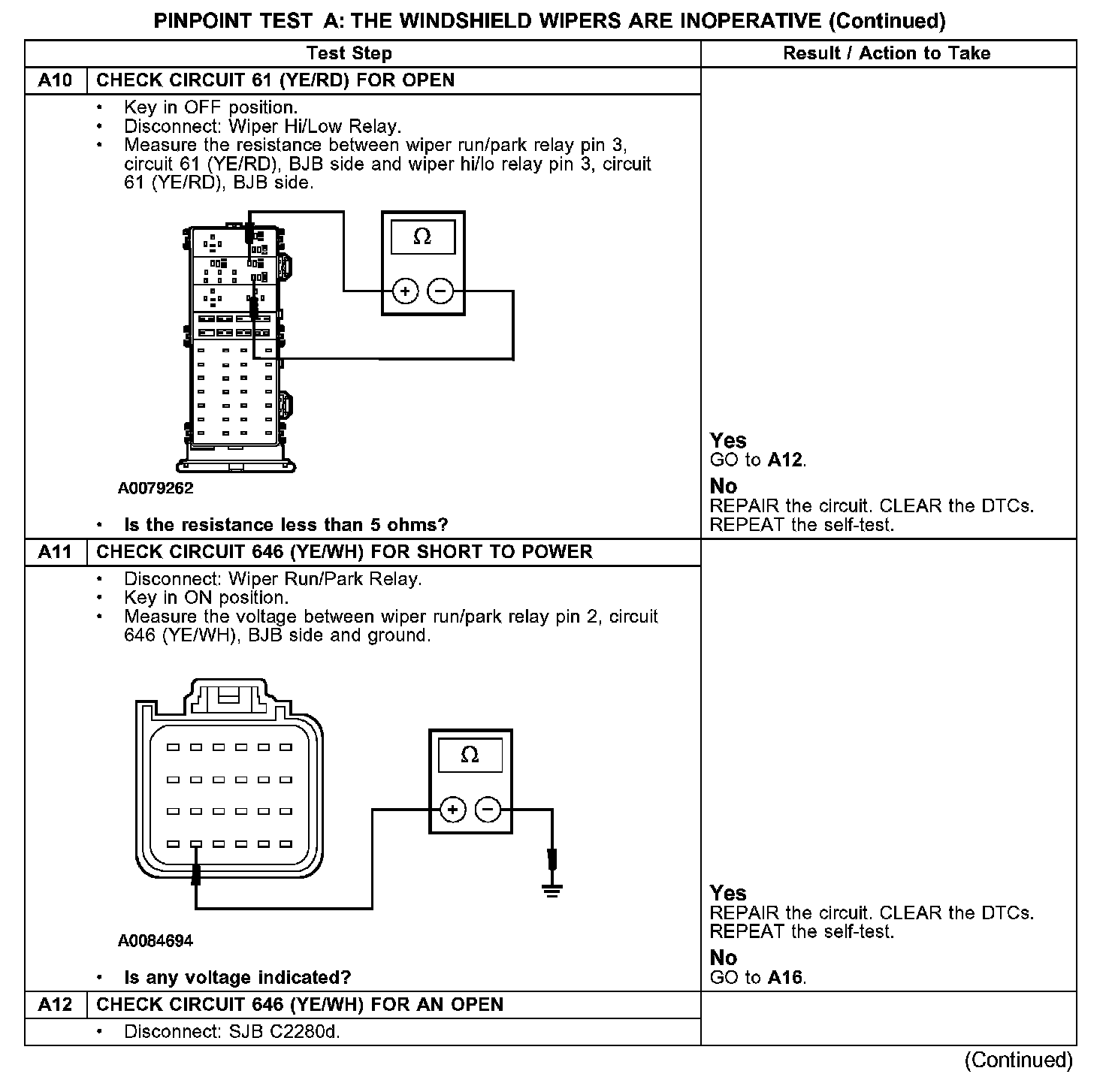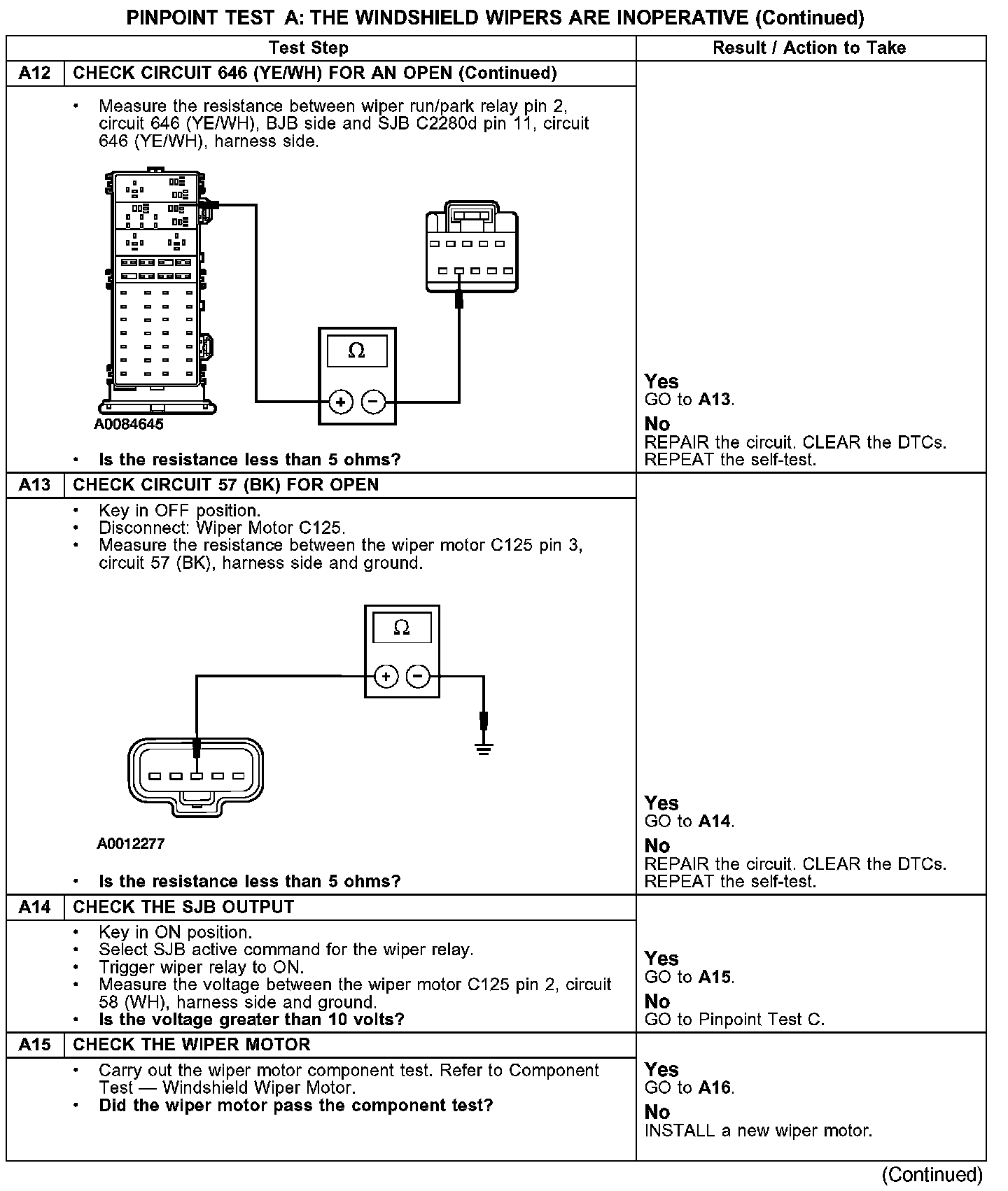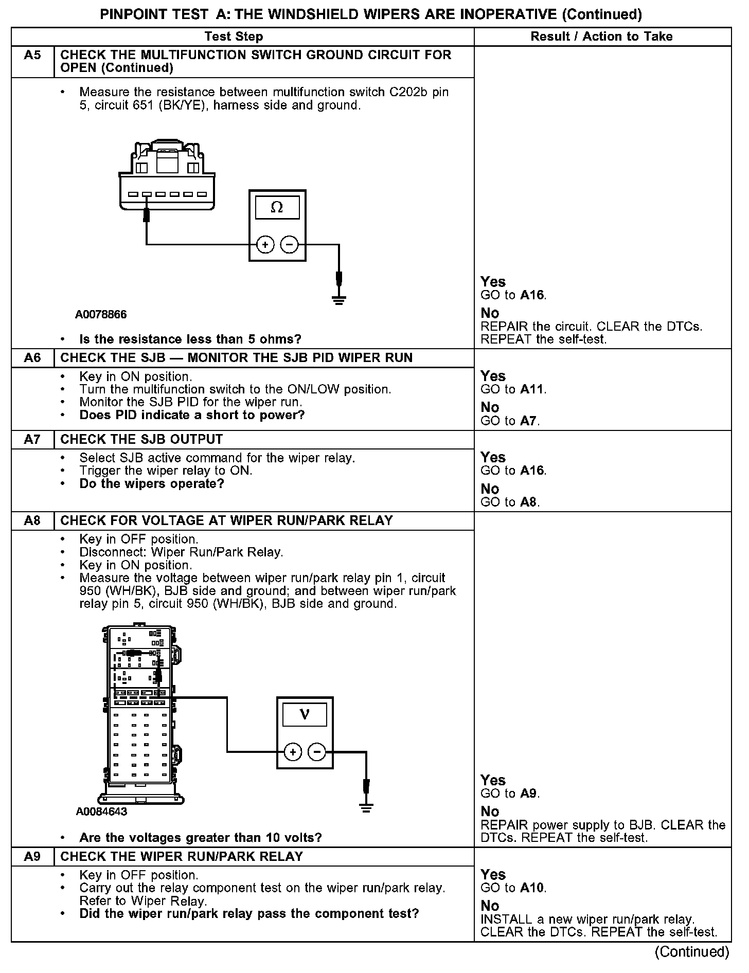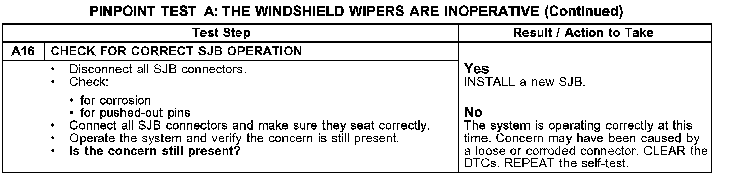 PINPOINT TEST A: THE WINDSHIELD WIPERS ARE INOPERATIVE