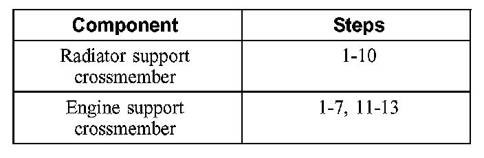 4. If removing the radiator support crossmember, support the radiator.