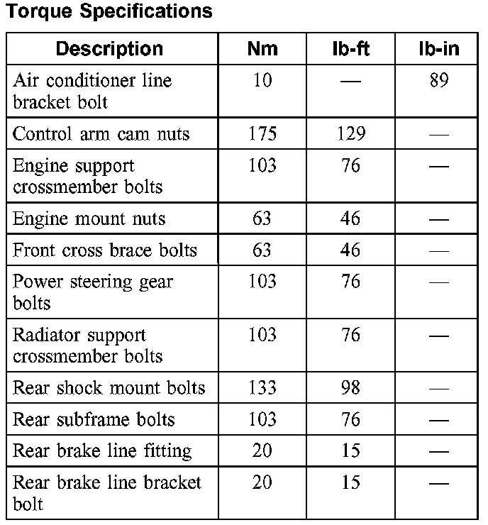 Torque Specifications: