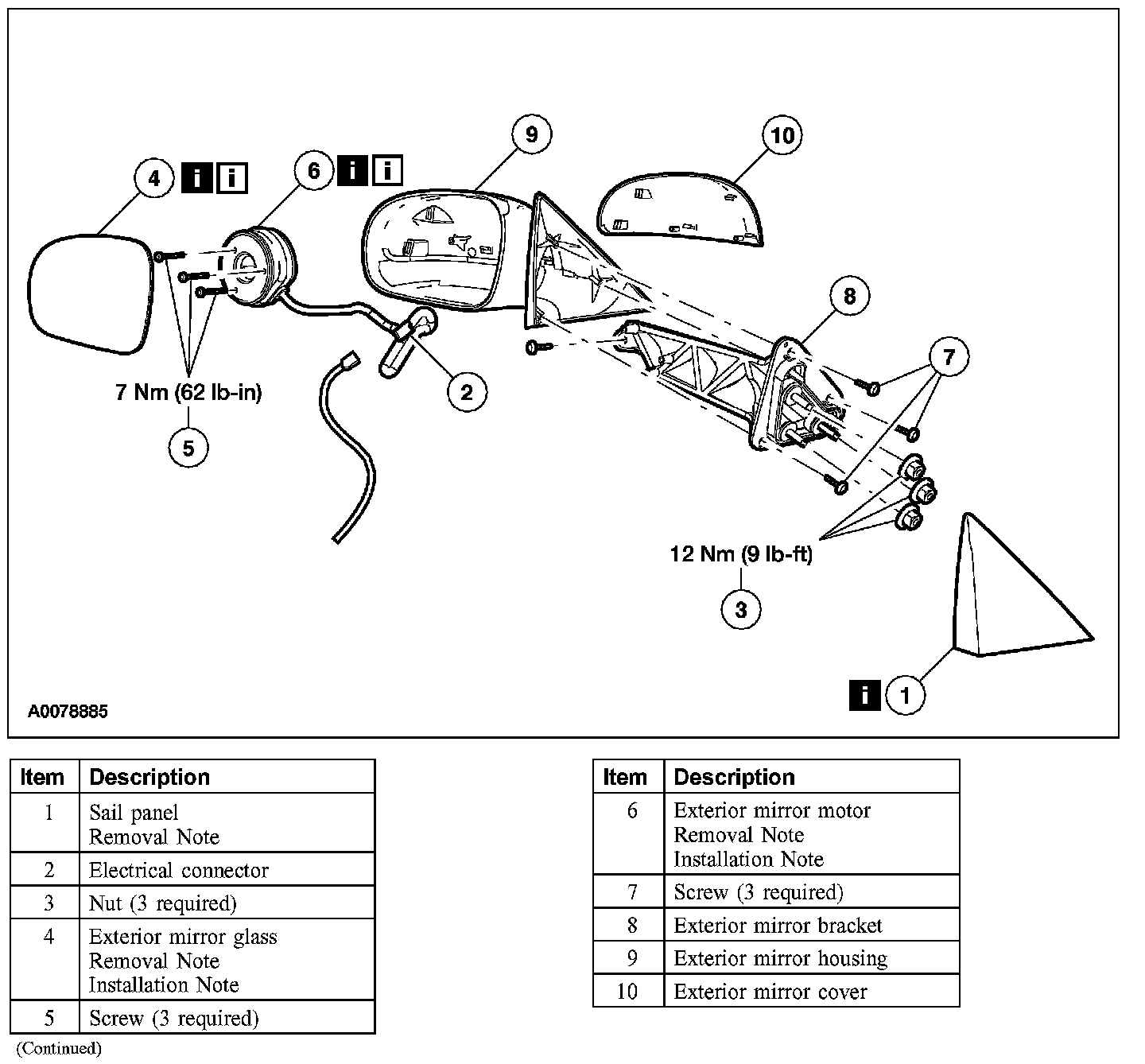 - When installing the mirror glass, make sure the motor gasket is in position between the mirror glass and the mirror motor, and the mirror glass snaps completely onto the mirror motor.