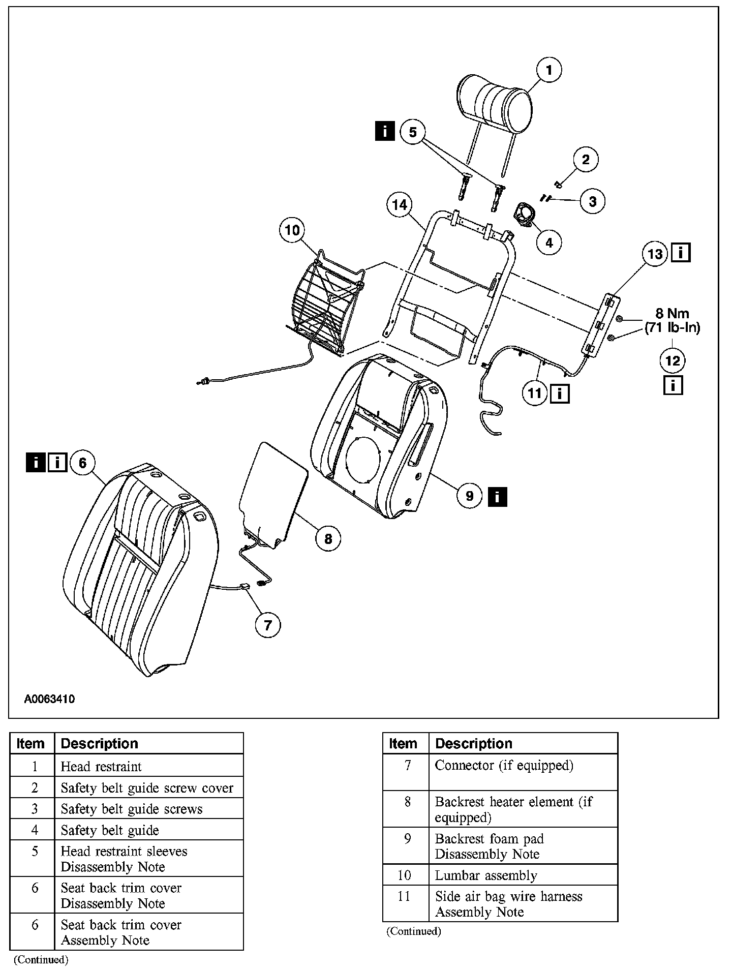 Item 6: Seat Back Trim Cover Assembly Note