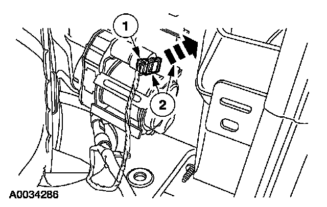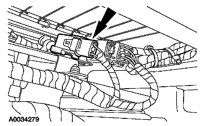6. From under the driver seat, remove the restraint system diagnostic tool from the driver seat side air bag floor electrical connector.