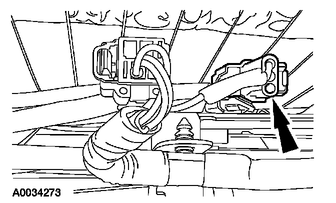 8. Remove the restraint system diagnostic tool from the passenger side safety belt retractor pretensioner electrical connector.