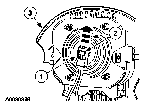 22. Remove the restraint system diagnostic tool from the clockspring electrical connector at the top of the steering column.