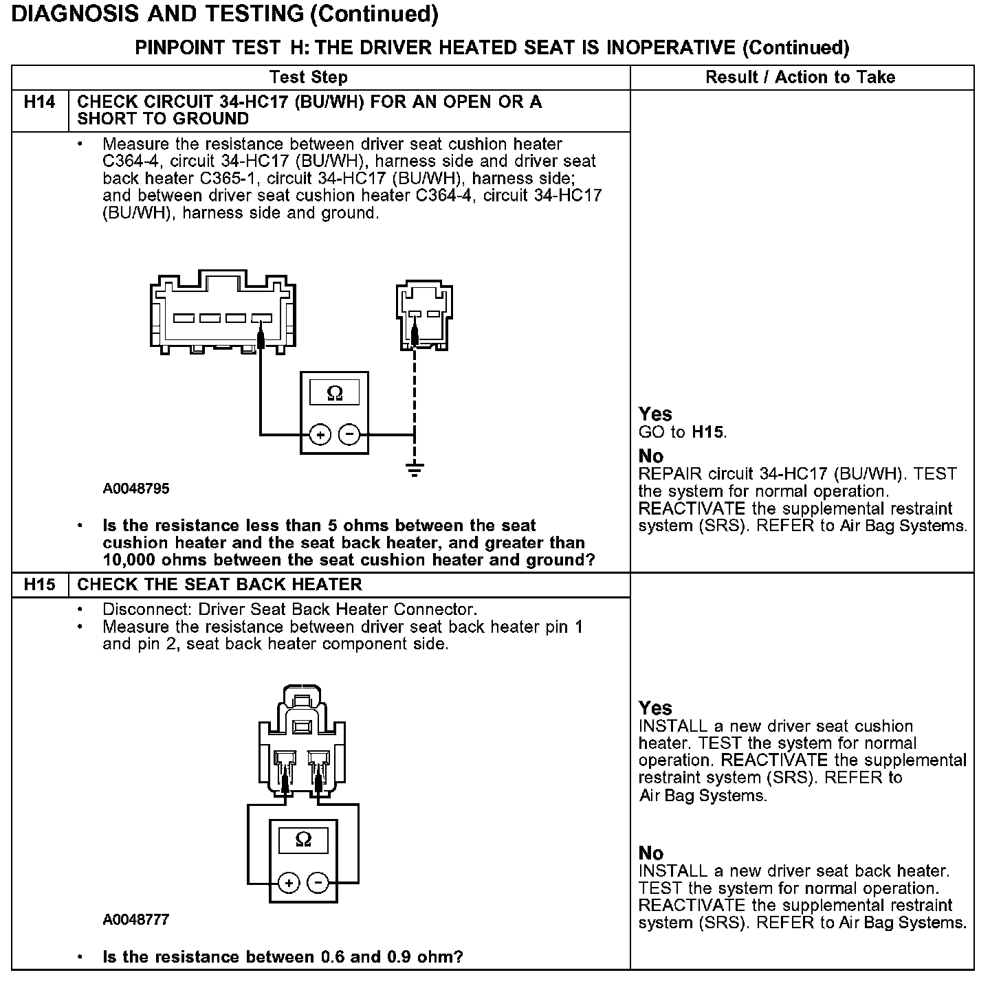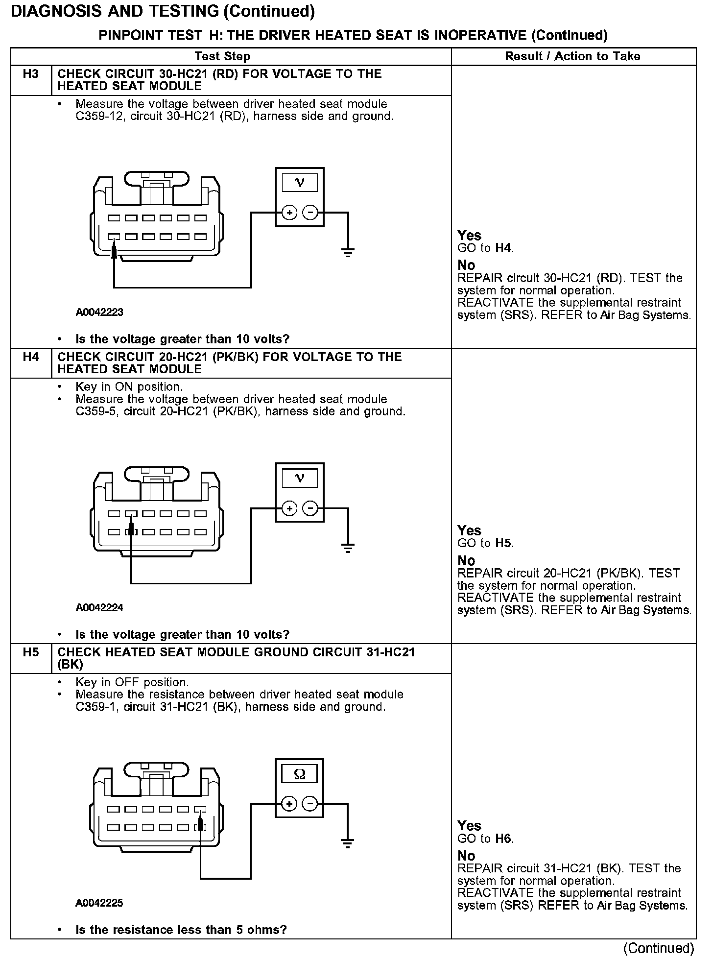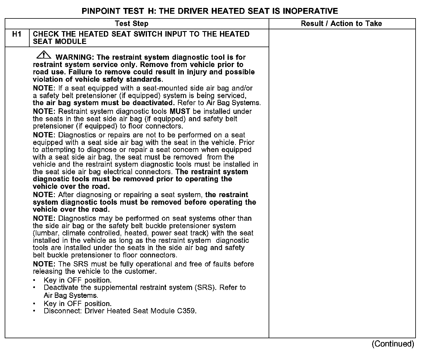 PINPOINT TEST H: THE HEATED SEAT IS INOPERATIVE - DRIVERTest H1: