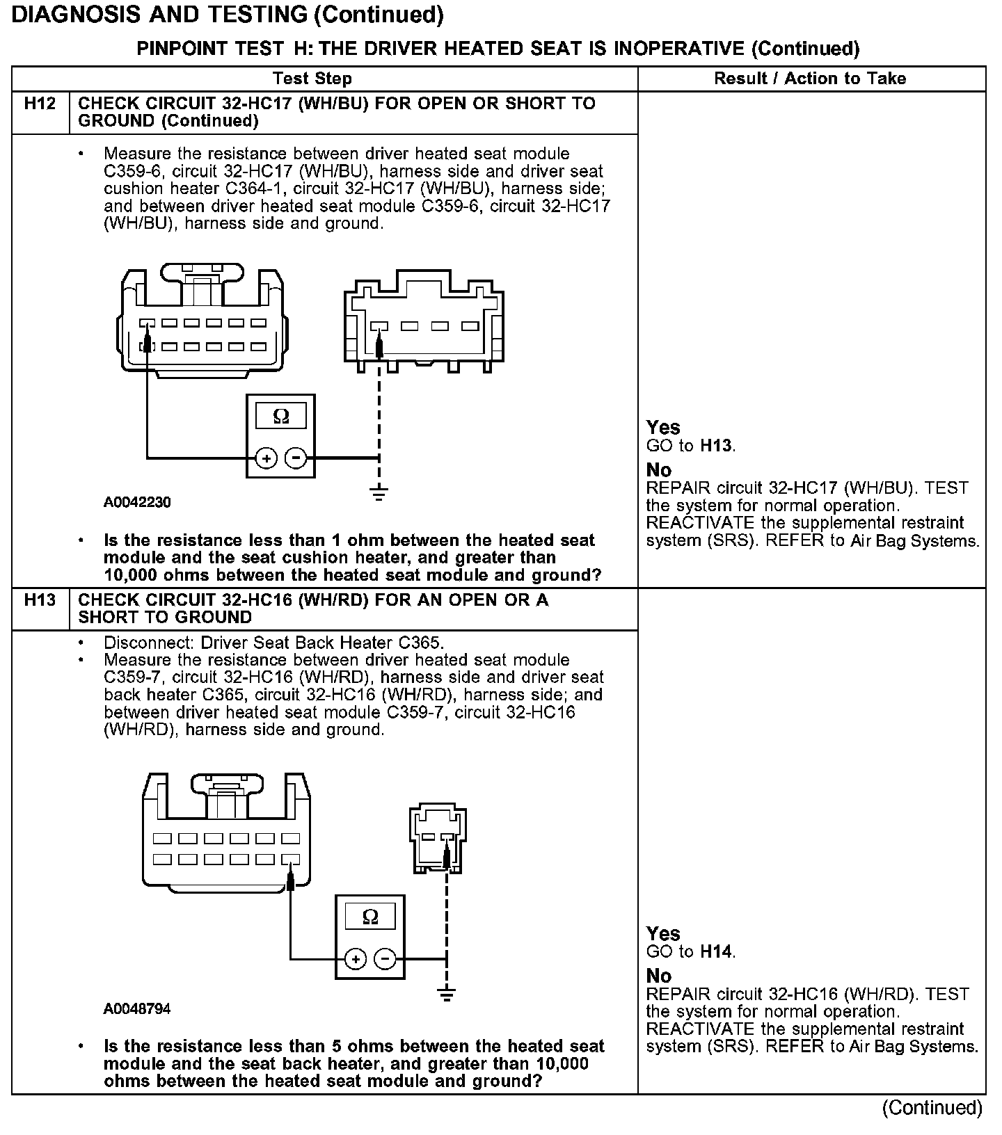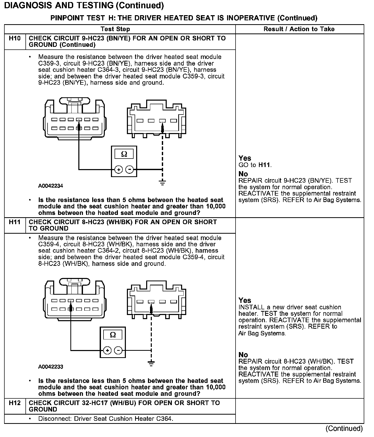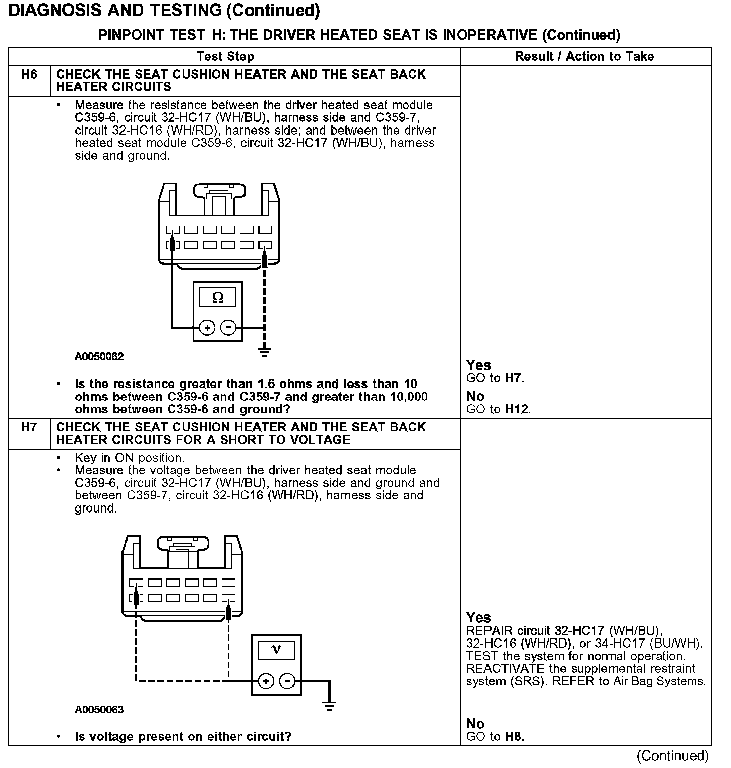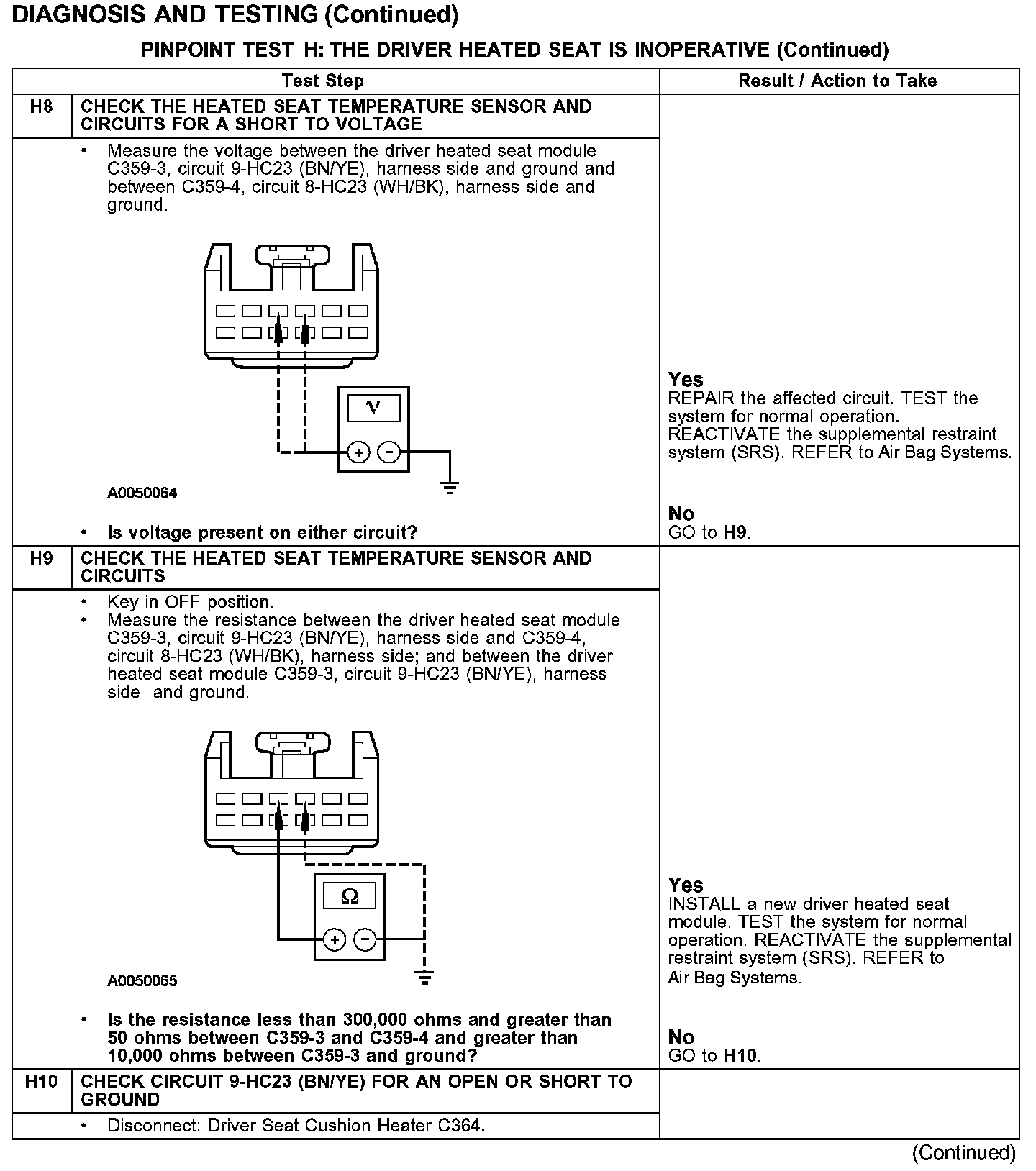 PINPOINT TEST H: THE HEATED SEAT IS INOPERATIVE - DRIVERTest H1: