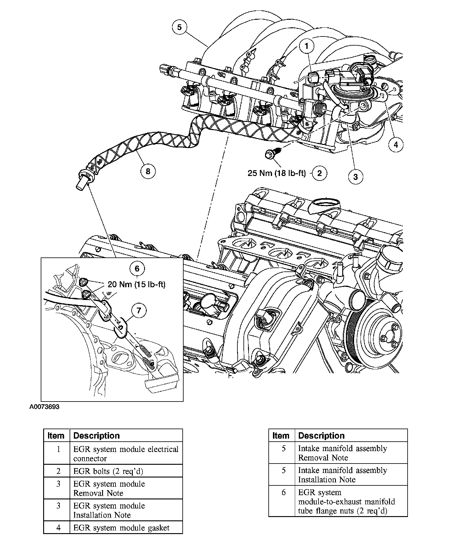 2. Disconnect the EGR system module-to-exhaust manifold tube from the EGR system module.