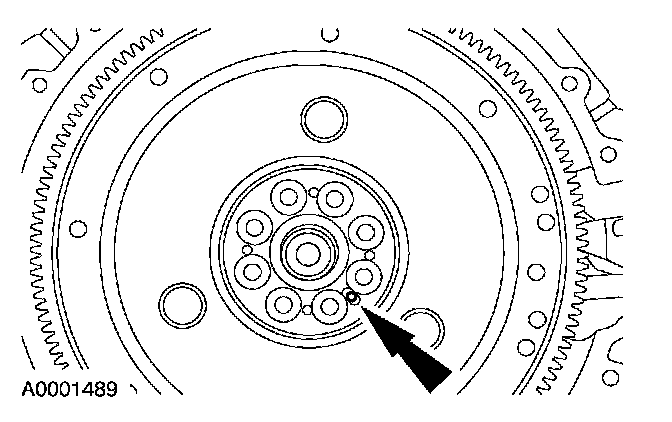 1. NOTE: The crankshaft dowel must be positioned below the outer face of the flexplate.