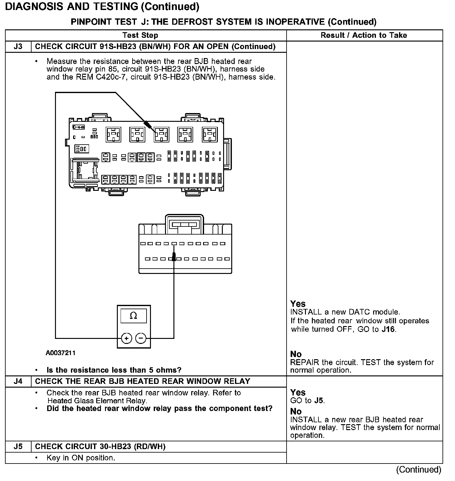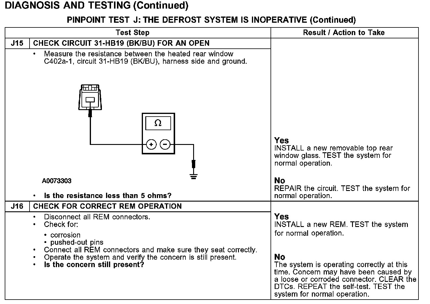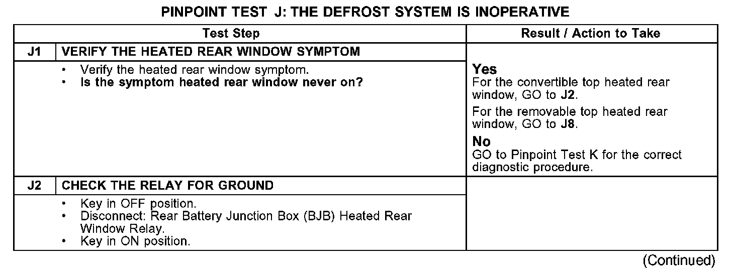 PINPOINT TEST J: THE DEFROST SYSTEM IS INOPERATIVE