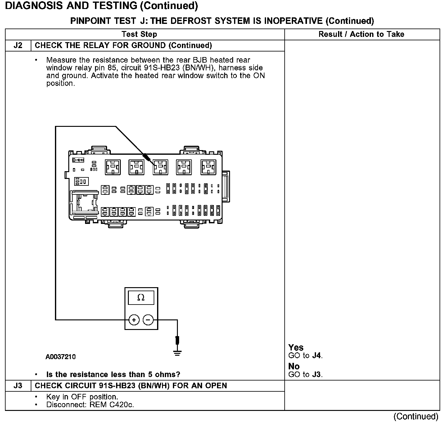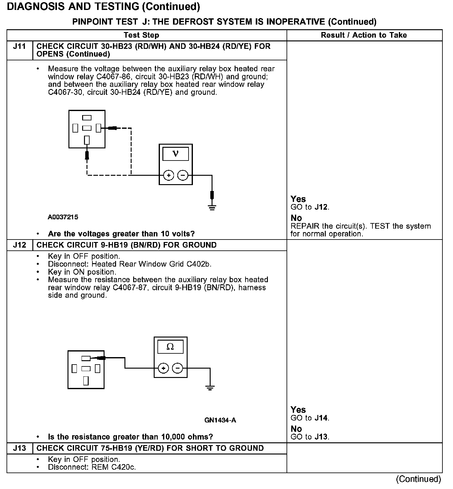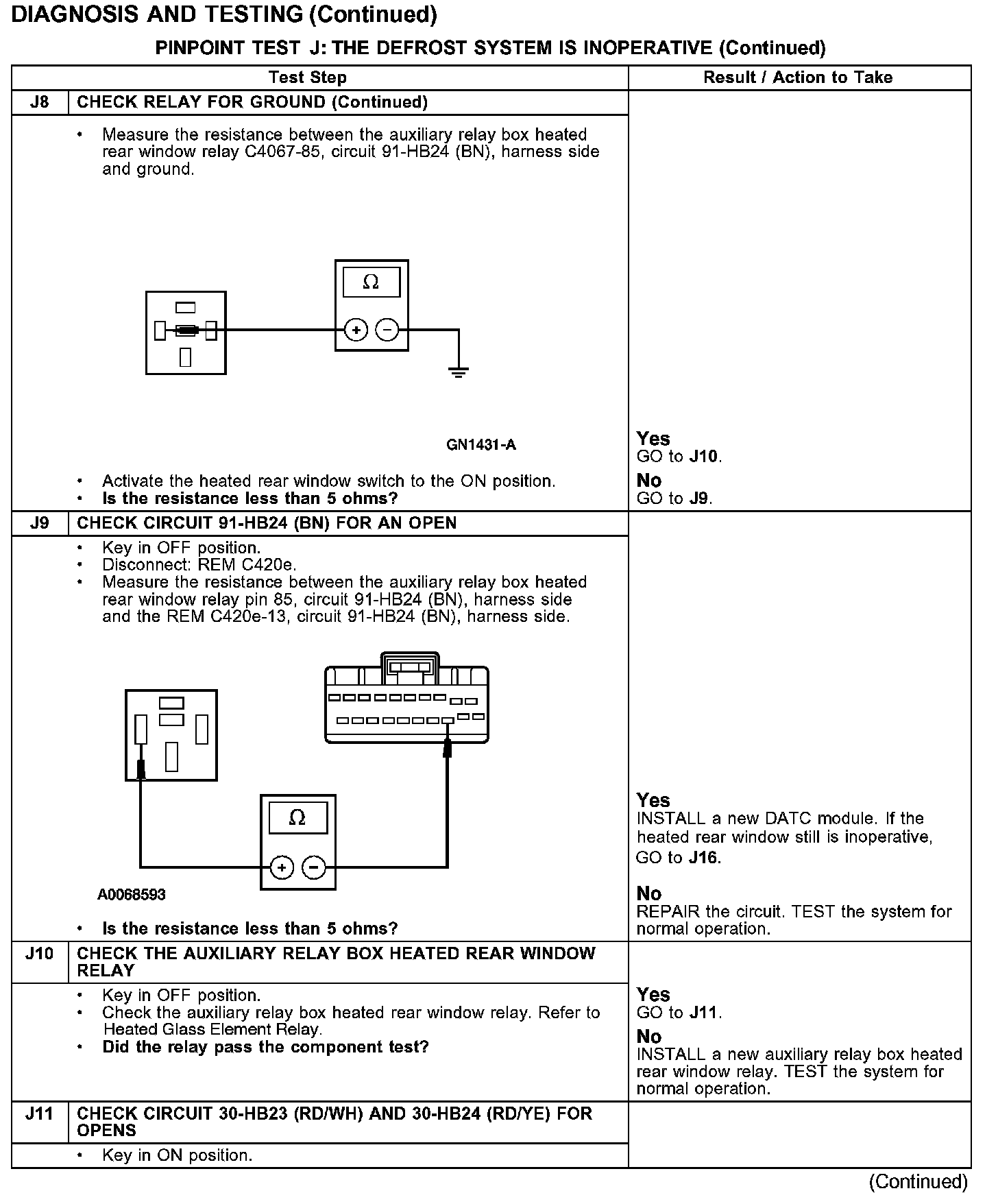 PINPOINT TEST J: THE DEFROST SYSTEM IS INOPERATIVE