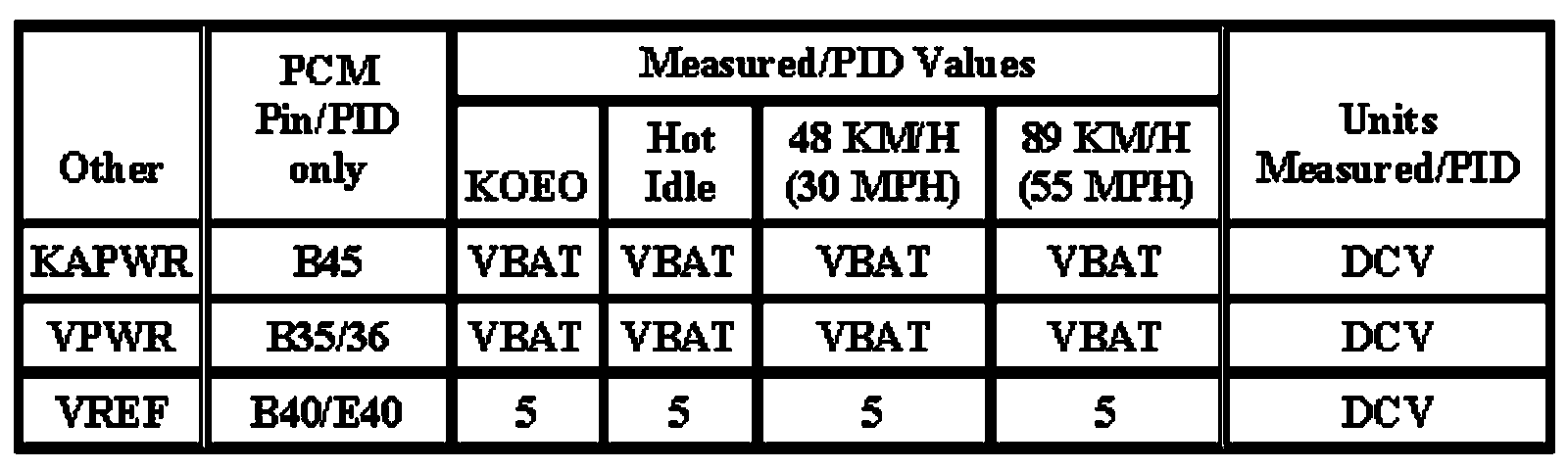 The Typical Diagnostic Reference Value Charts do not display fault PIDs. These are PIDs which indicate a hard fault with the circuit. They display a value of "YES" or "NO" and are PIDs ending with an "F".