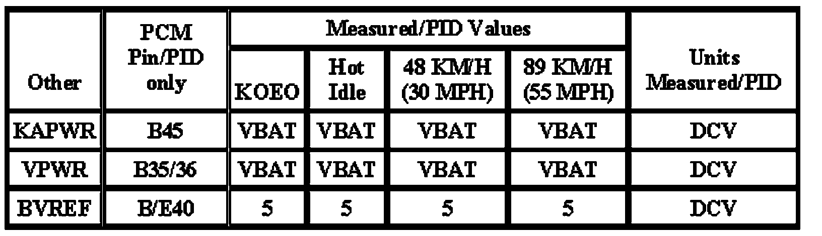 The Typical Diagnostic Reference Value Charts do not display fault PIDs. These are PIDs which indicate a hard fault with the circuit. They display a value of "YES" or "NO" and are PIDs ending with an "F".