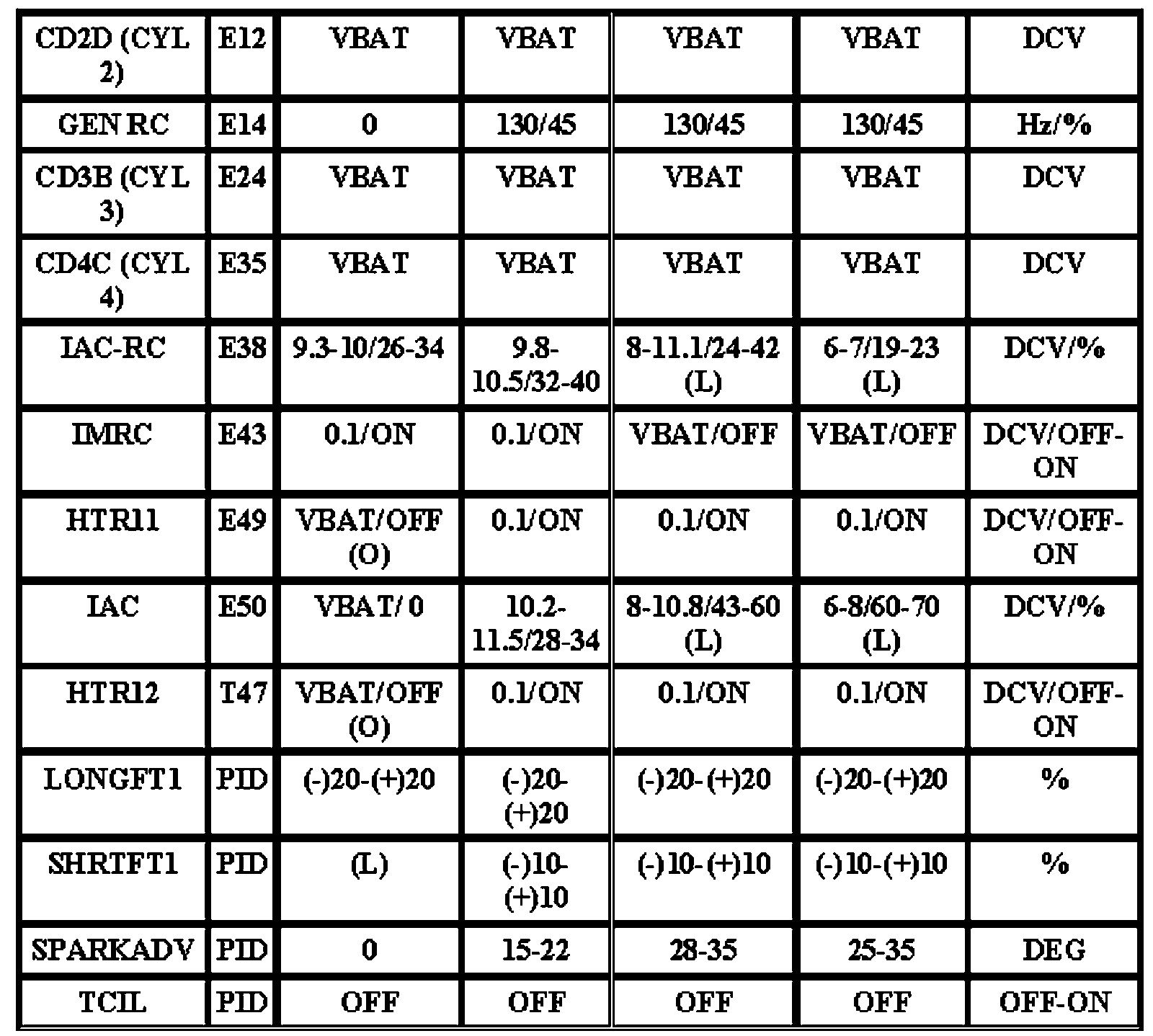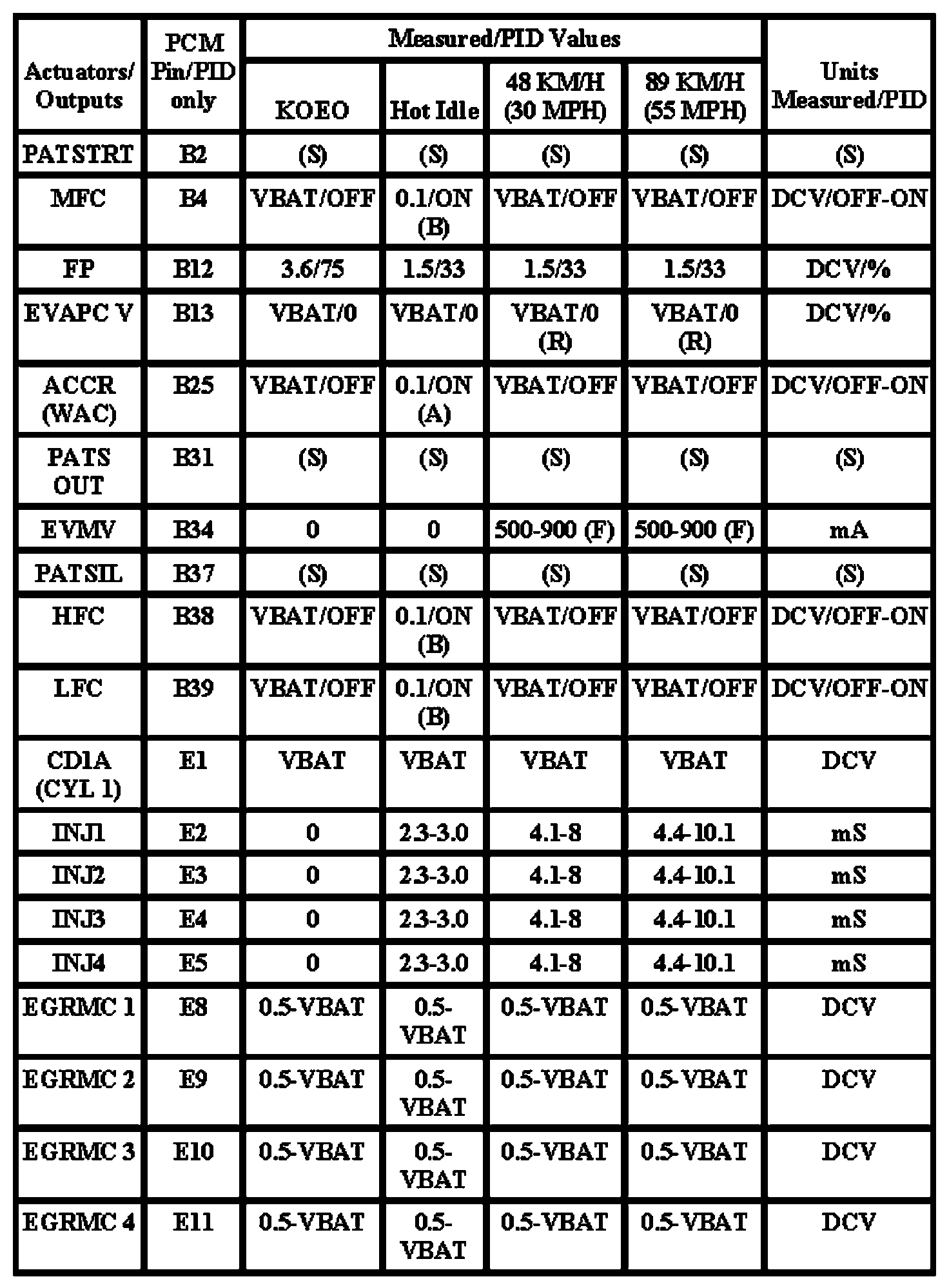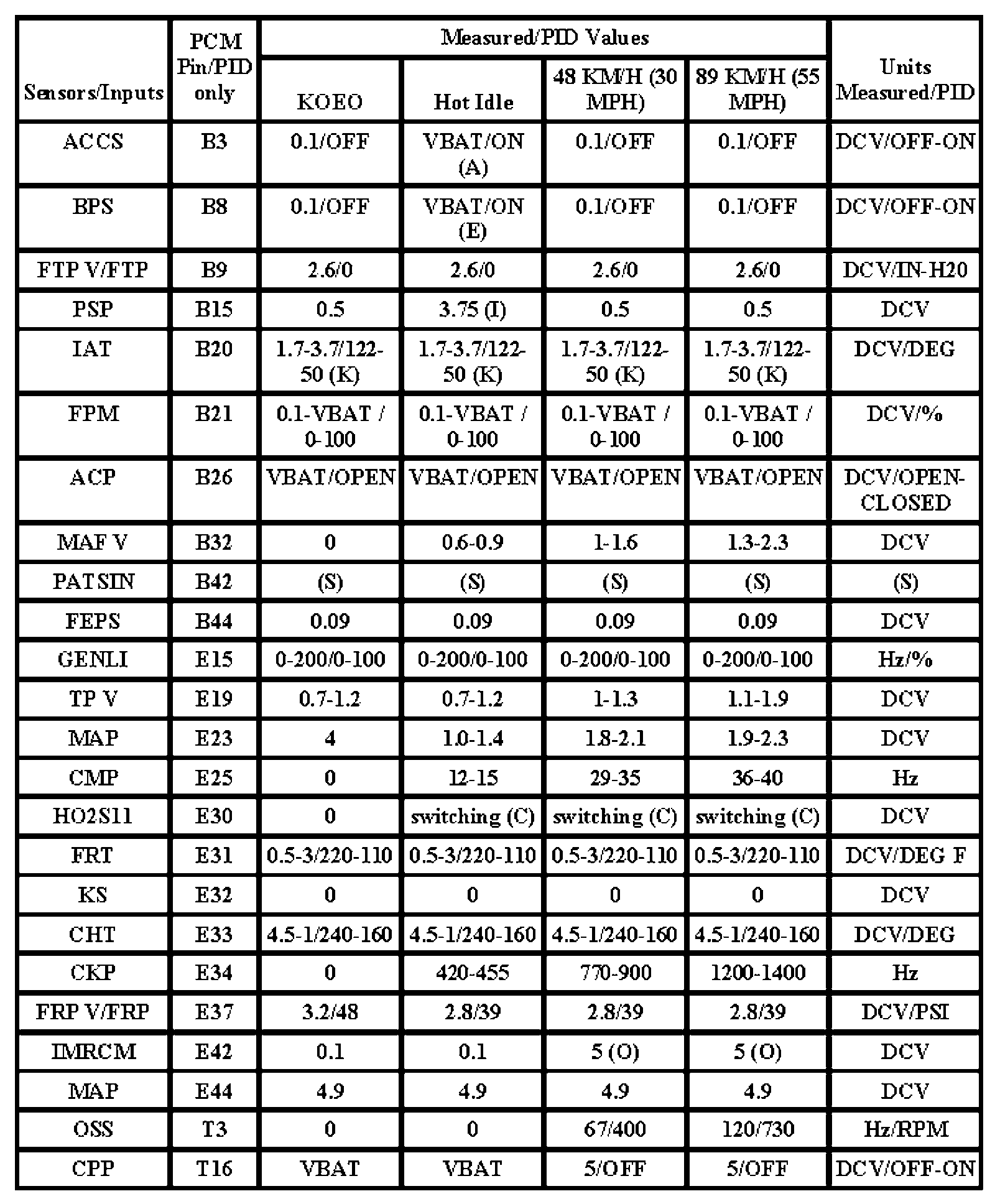 Note: All generic OBD readings under no load (PARK or NEUTRAL).
