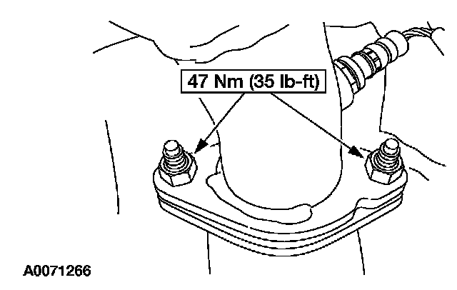 3. Remove the 2 catalytic converter-to-muffler assembly flange nuts. Discard the nuts.