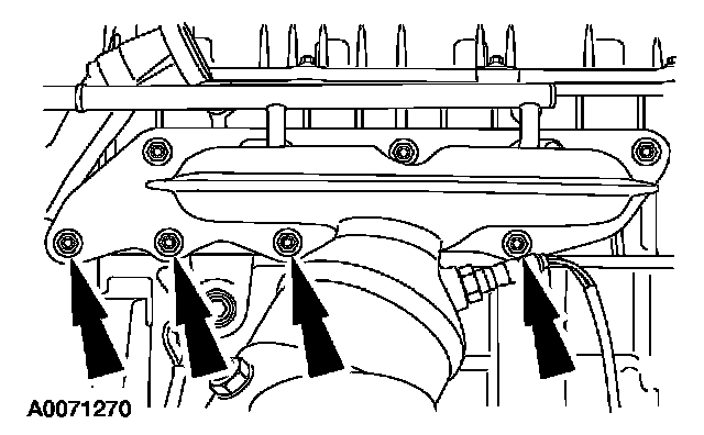 15. Remove the upper 3 catalytic converter nuts and studs. Discard the nuts.