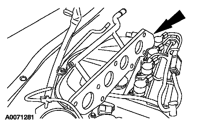 14. Remove the VMV bolts. Position the VMV and bracket aside.
