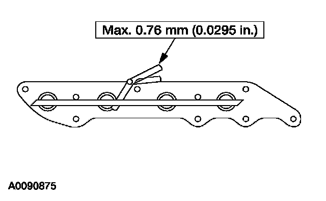 - Using a straightedge and feeler gauge, place the straightedge across the catalytic converter flange surface and check for warpage with the feeler gauge. If the reading is greater than the maximum specification, install a new catalytic converter, gasket and nuts.