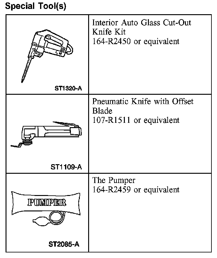 1. WARNING: To prevent glass splinters from entering the eyes or cutting the hands, wear safety glasses and heavy gloves when cutting the glass from the vehicle. Failure to follow these instructions may result in personal injury.