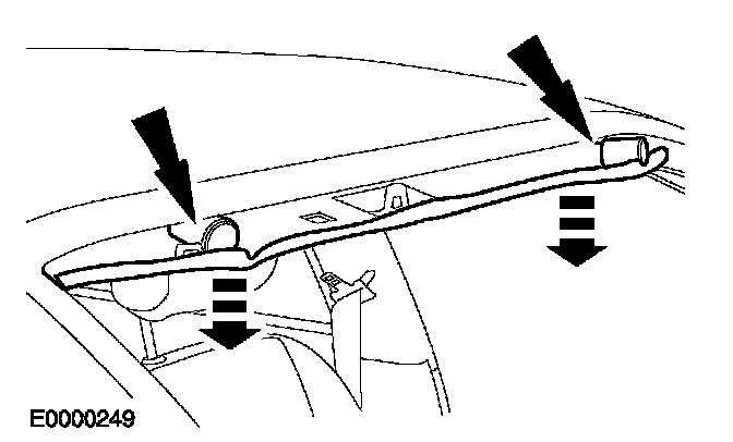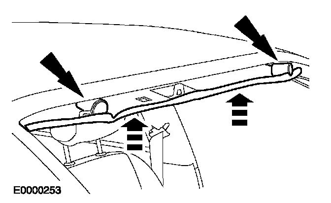 8. Partially lower the headliner and place 2 blocks of suitable material between the headliner and the roof opening to act as spacers.