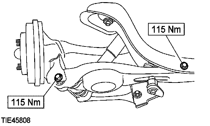 15. Tighten the upper arm-to-wheel knuckle retaining bolts on both sides.