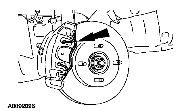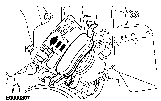 7. CAUTION: If the caliper piston is retracted into the housing, brake fluid may be displaced from the master cylinder.