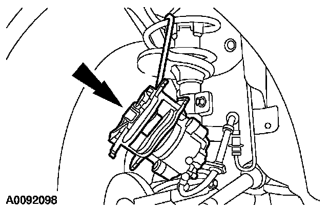 5. CAUTION: Do not allow the brake caliper to hang by the flexible brake hose.