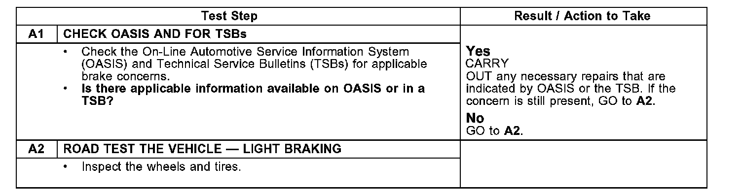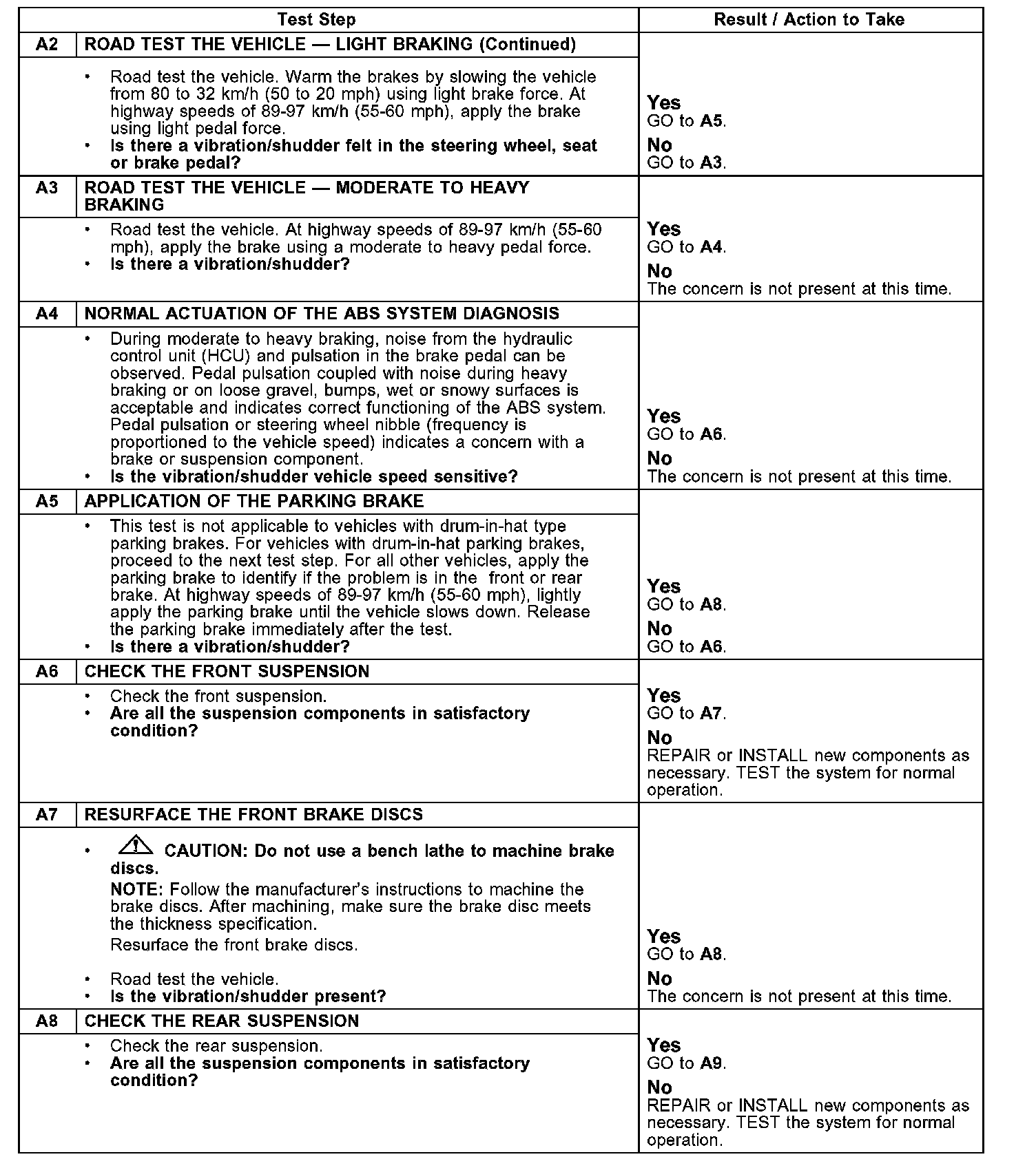 PINPOINT TEST A: VIBRATION WHEN THE BRAKES ARE APPLIED