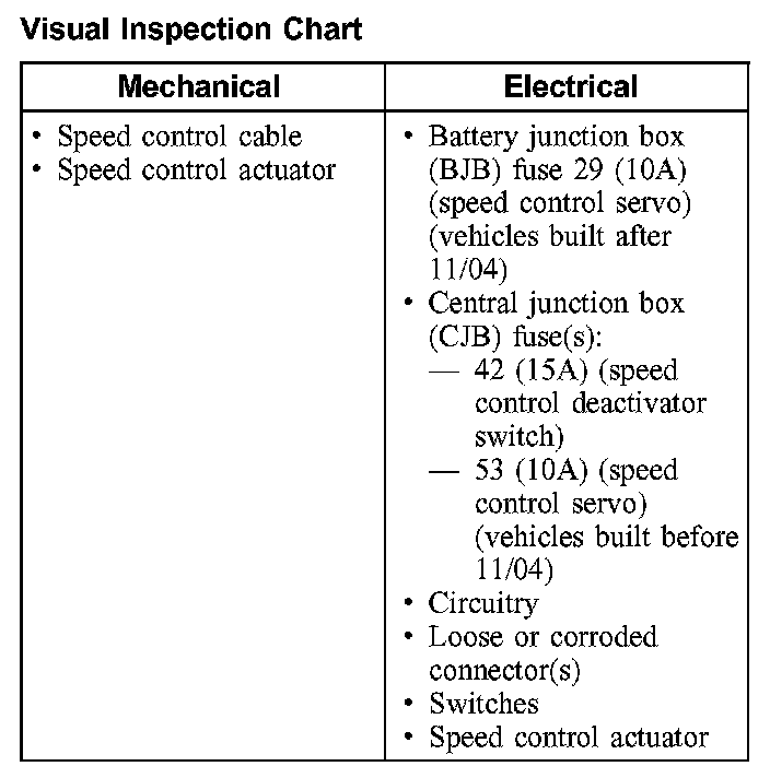 INSPECTION AND VERIFICATIONNOTE: If any concerns are noted with the speedometer, stoplamps, or horn, address those concerns by referring to their associated components before continuing speed control system diagnosis.