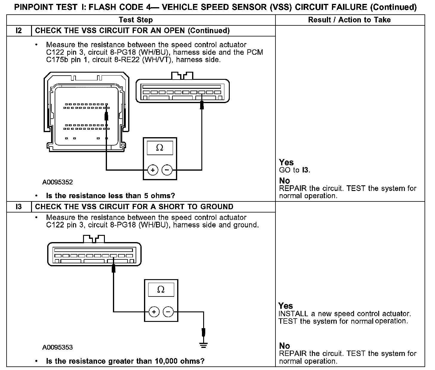 Test I: Flash Code 4 - Vehicle Speed Sensor (VSS) Circuit Failure