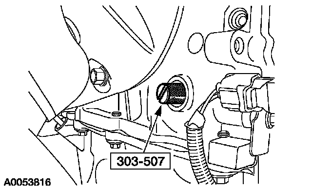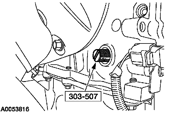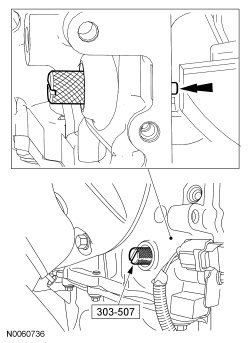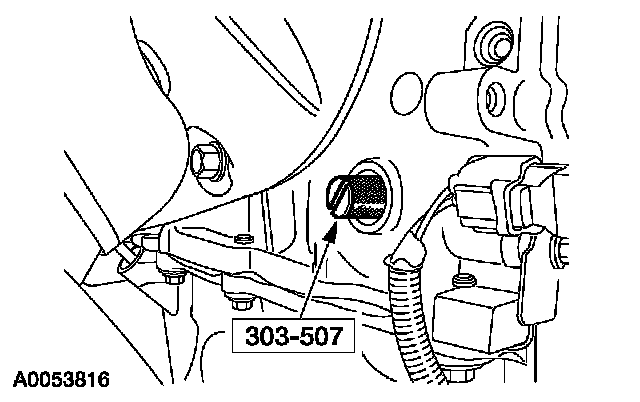 24. CAUTION: The special tool 303-465 is for camshaft alignment only. Using this tool to prevent engine rotation can result in engine damage.