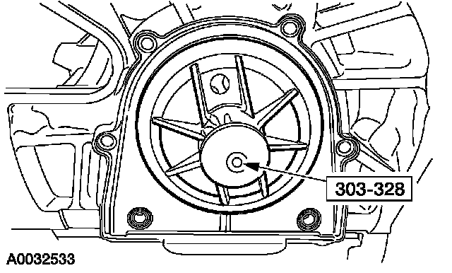 NOTICE: Do not loosen or remove the crankshaft pulley bolt without first installing the special tools as instructed in this procedure. The crankshaft pulley and the crankshaft timing sprocket are not keyed to the crankshaft. The crankshaft, the crankshaft sprocket and the pulley are fitted together by friction, using diamond washers between the flange faces on each part. For that reason, the crankshaft sprocket is also unfastened if you loosen the pulley bolt. Before any repair requiring loosening or removal of the crankshaft pulley bolt, the crankshaft and camshafts must be locked in place by the special service tools, otherwise severe engine damage can occur.