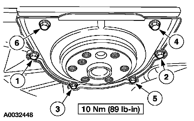 8. Tighten the crankshaft rear main oil seal bolts in the sequence shown.