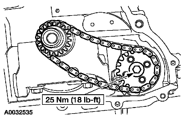 Install the crankshaft sprocket, new crankshaft sprocket diamond washers, oil pump chain and oil pump sprocket.