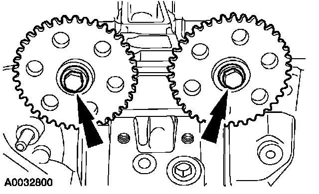 25. Install the camshaft sprockets and the bolts. Do not tighten the bolts at this time.