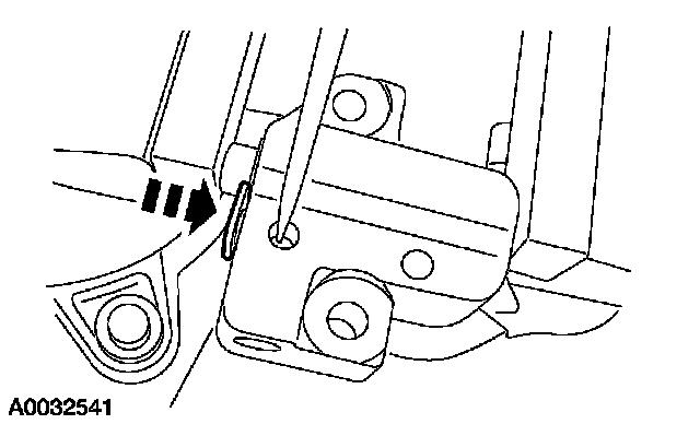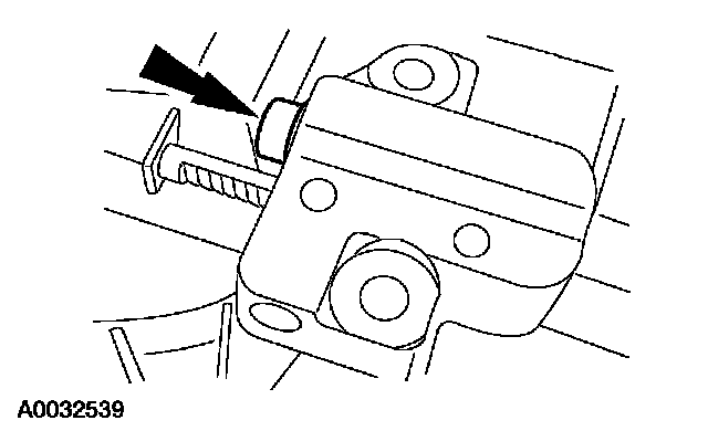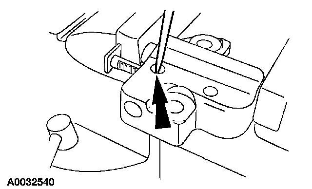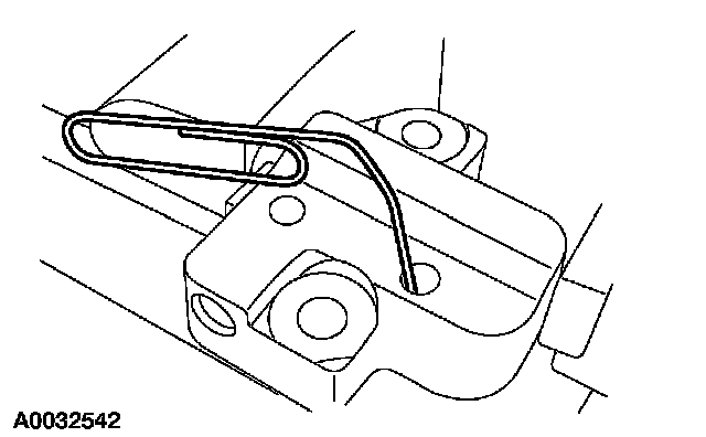 32. Install a paper clip into the hole in the tensioner housing to hold the ratchet assembly and the plunger in during installation.