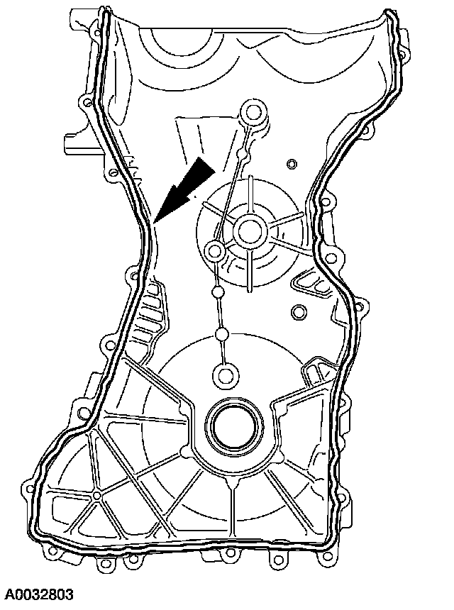 Apply a 2.5 mm bead of silicone gasket and sealant to the cylinder head and oil pan joint areas. Apply a 2.5 mm bead of silicone gasket and sealant to the front cover.