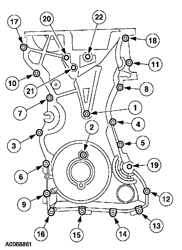 37. Install the engine front cover. Tighten the bolts in the sequence shown to the following specifications: