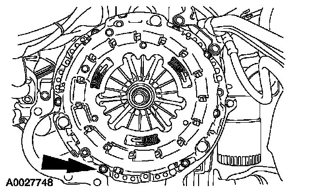CAUTION: Loosen the bolts evenly to prevent pressure plate damage.