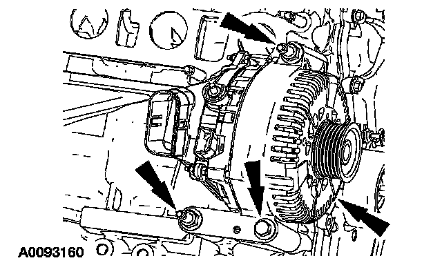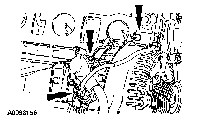 6. Remove the nut and disconnect the generator electrical connections and harness retainer.